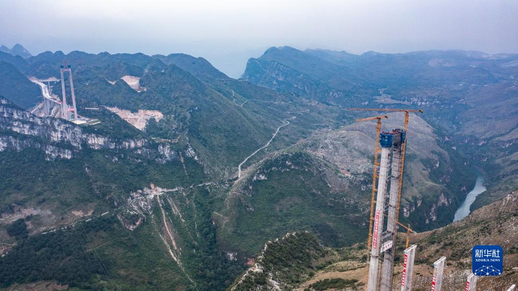 花江峽谷大橋是六安高速公路的控制性工程之一,建成后主橋橋面與谷底的北盤(pán)江距離達625米,將成為世界第一高橋。