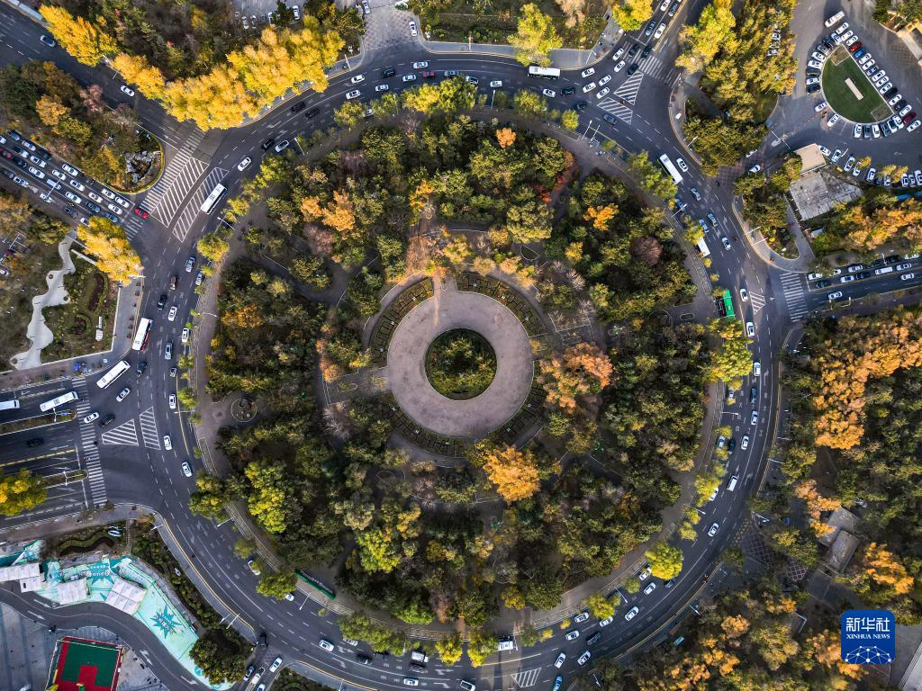 這是10月24日拍攝的長(cháng)春市新民廣場(chǎng)秋景(無(wú)人機照片)。