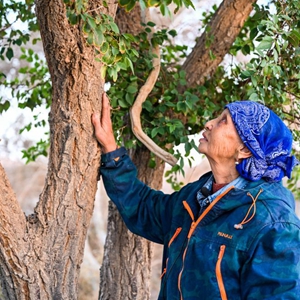 “時(shí)代楷?!碧K和是內蒙古阿拉善盟退休干部,從2004年到2021年間,他和老伴德力格在額濟納旗黑城遺址邊種下了9萬(wàn)棵梭梭苗,用3500畝的梭梭林為黑城遺址筑起了一道寬500米、長(cháng)3公里的生態(tài)屏障,他被譽(yù)為“大漠胡楊”“沙漠愚公”。2021年,蘇和老人去世。德力格和他們的孩子依然堅守在梭梭林,守護著(zhù)蘇和老人的綠色成果,并將其不斷擴大。