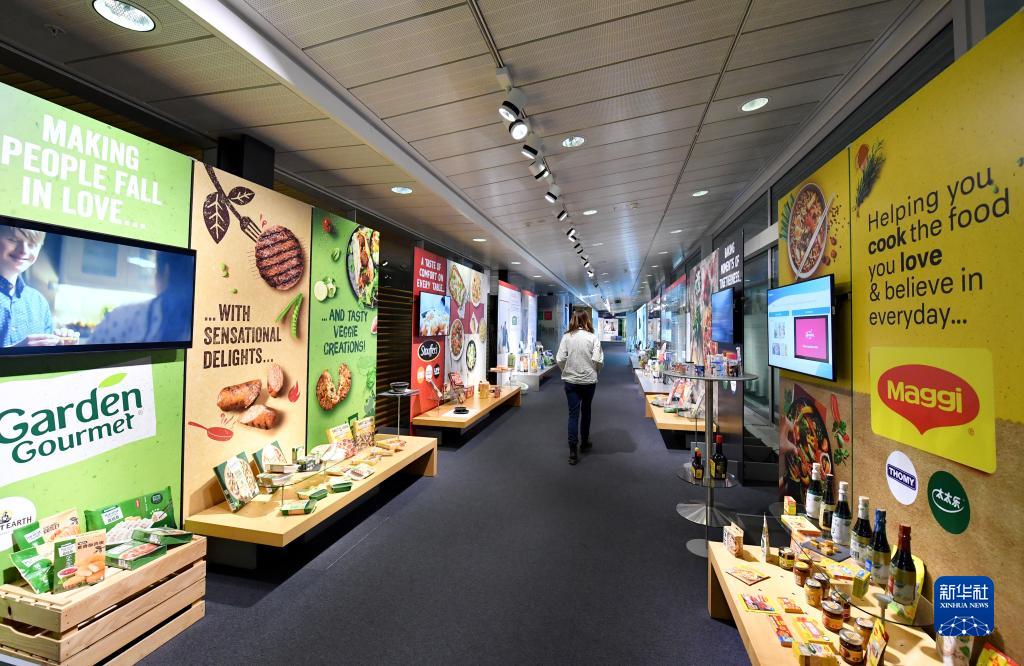10月31日,在瑞士沃韋的雀巢總部,工作人員走過(guò)全球產(chǎn)品展示廊。