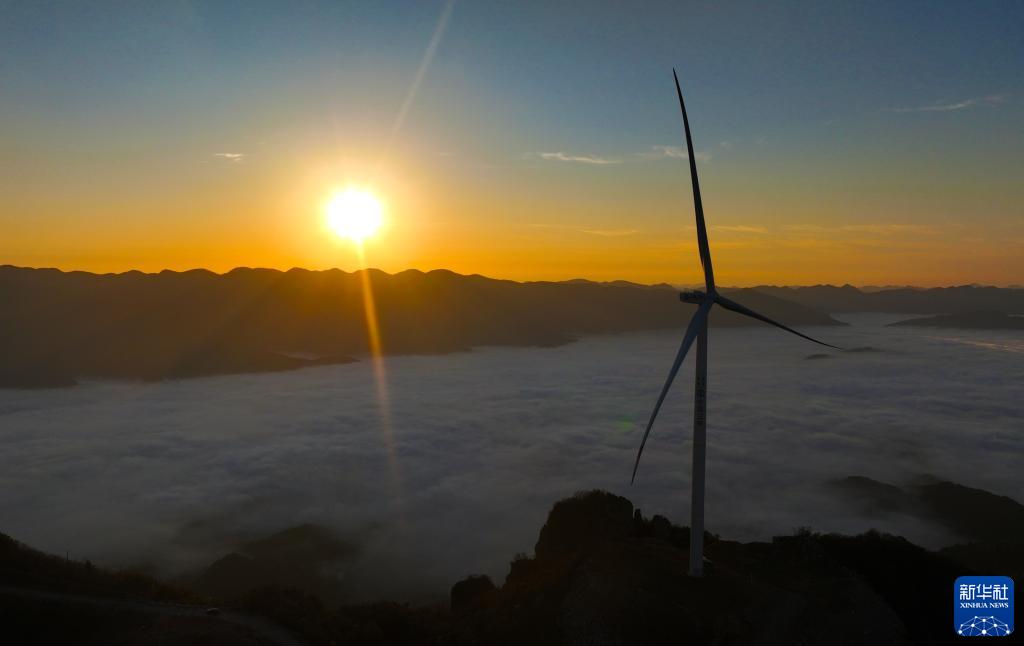 11月1日拍攝重慶市黔江區五福嶺風(fēng)電場(chǎng)晨景(無(wú)人機照片)。