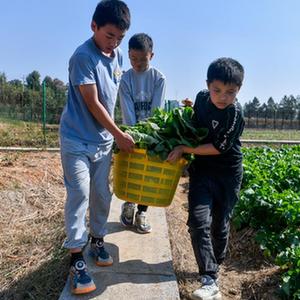 11月2日,在黃梅縣停前鎮中學(xué),學(xué)生在種植園內上勞動(dòng)課。