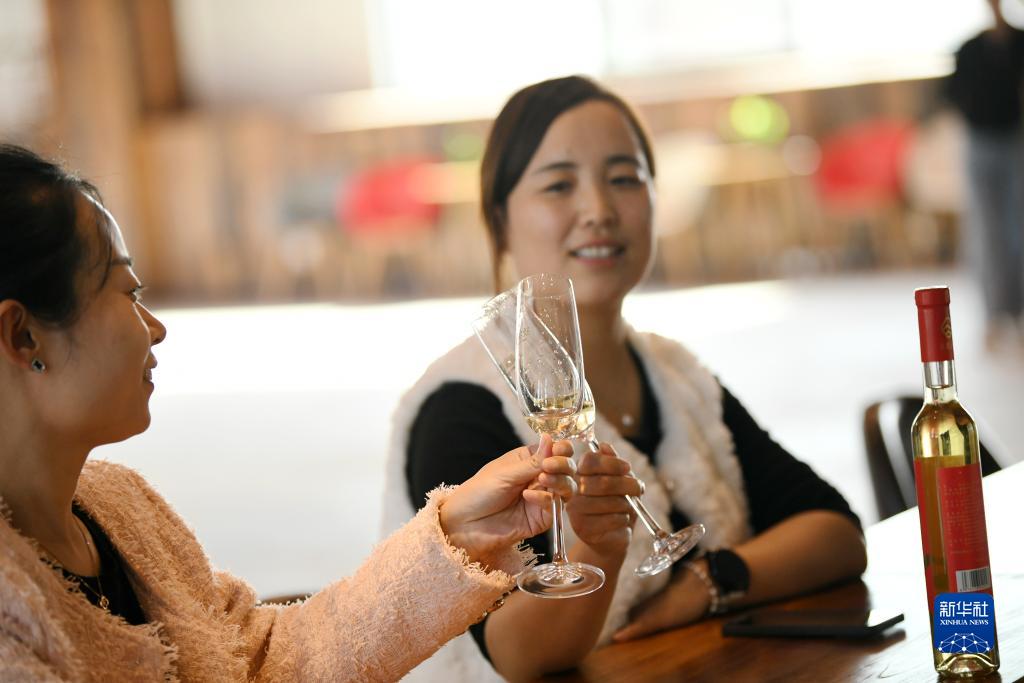 11月2日,在位于陜西省富平縣的云集柿業(yè)富平柿園綜合項目,顧客品嘗由富平尖柿釀造的柿子酒。