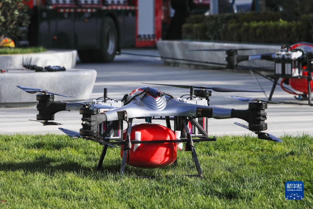 這是11月8日拍攝的新型高噴滅火無(wú)人機。
