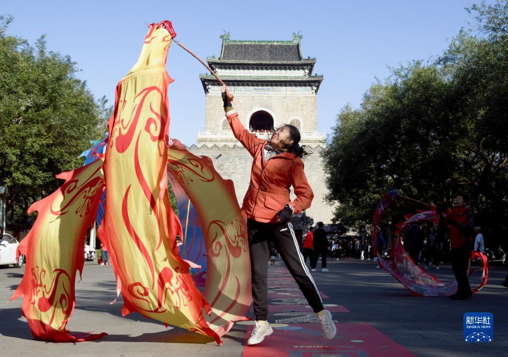 市民在北京鐘樓前鍛煉身體(11月7日攝)。鐘鼓樓位于北京中軸線(xiàn)的最北端,兩樓前后縱置,氣勢雄偉。作為元、明、清三代都城的報時(shí)中心,至今已有700多年的歷史。