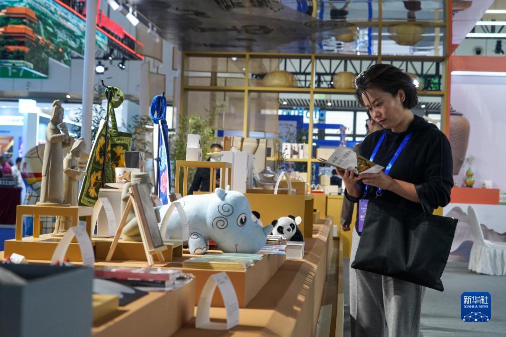 11月23日,在版博會(huì )展覽現場(chǎng),參會(huì )嘉賓在了解文創(chuàng )產(chǎn)品。