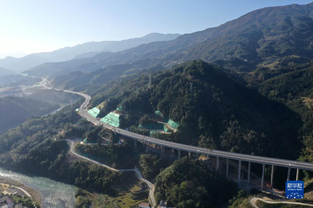 這是建設中的廣西龍勝各族自治縣境內的龍勝至城步高速公路(無(wú)人機照片,11月28日攝)。