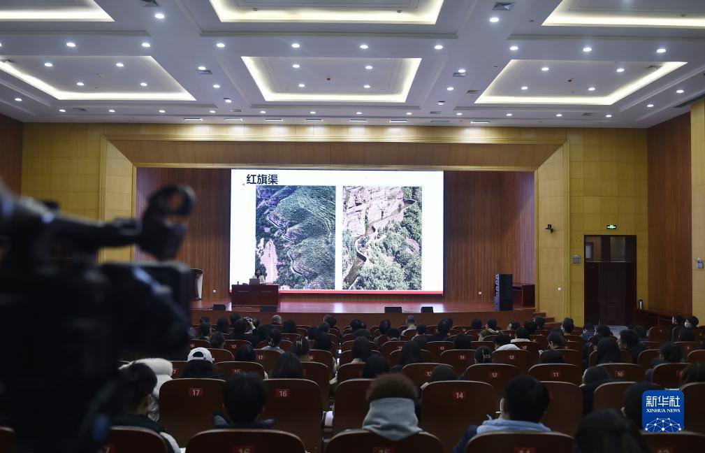 11月28日在河南農業(yè)大學(xué)拍攝的紅旗渠精神主題宣講活動(dòng)現場(chǎng)。