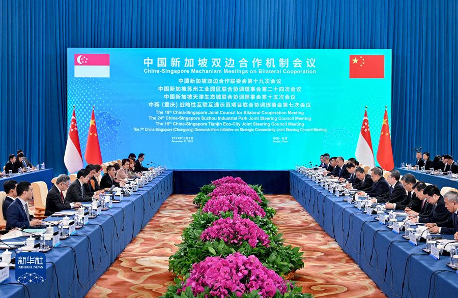 12月7日,中共中央政治局常委、國務(wù)院副總理丁薛祥在天津會(huì )見(jiàn)新加坡副總理兼財政部長(cháng)黃循財,并共同主持中新雙邊合作聯(lián)委會(huì )第十九次會(huì )議、蘇州工業(yè)園區聯(lián)合協(xié)調理事會(huì )第二十四次會(huì )議、中新天津生態(tài)城聯(lián)合協(xié)調理事會(huì )第十五次會(huì )議和中新(重慶)戰略性互聯(lián)互通示范項目聯(lián)合協(xié)調理事會(huì )第七次會(huì )議。這是丁薛祥和黃循財共同主持雙邊合作機制會(huì )議。