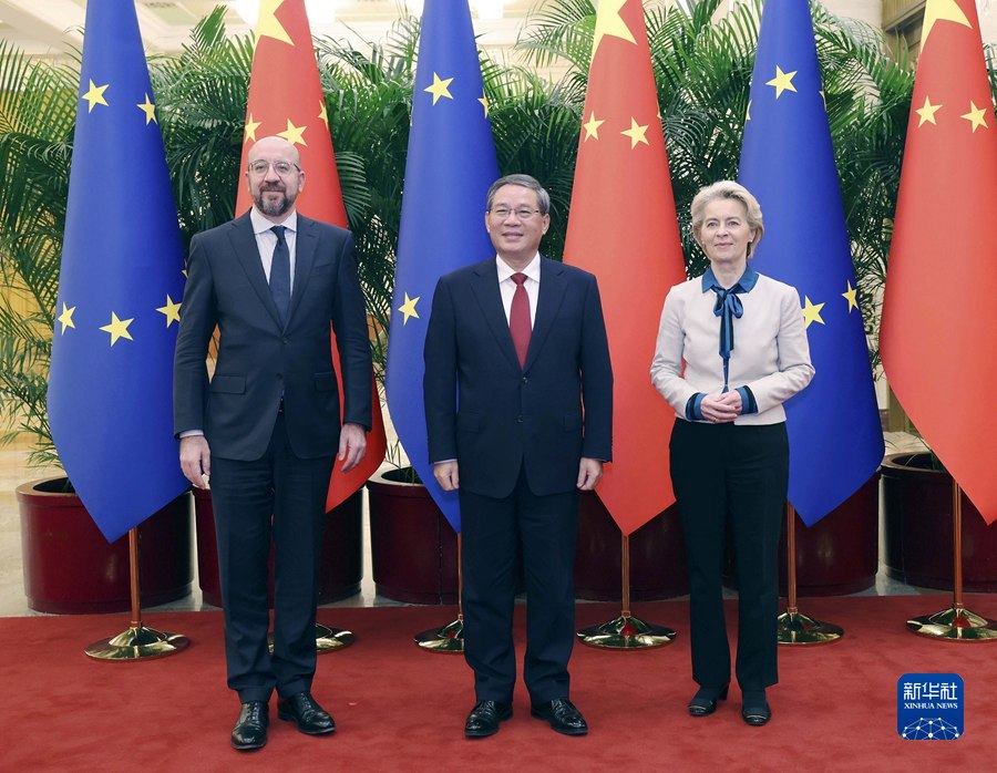 12月7日下午,國務(wù)院總理李強在北京人民大會(huì )堂同歐洲理事會(huì )主席米歇爾、歐盟委員會(huì )主席馮德萊恩共同主持第二十四次中國-歐盟領(lǐng)導人會(huì )晤。新華社記者 劉衛兵 攝