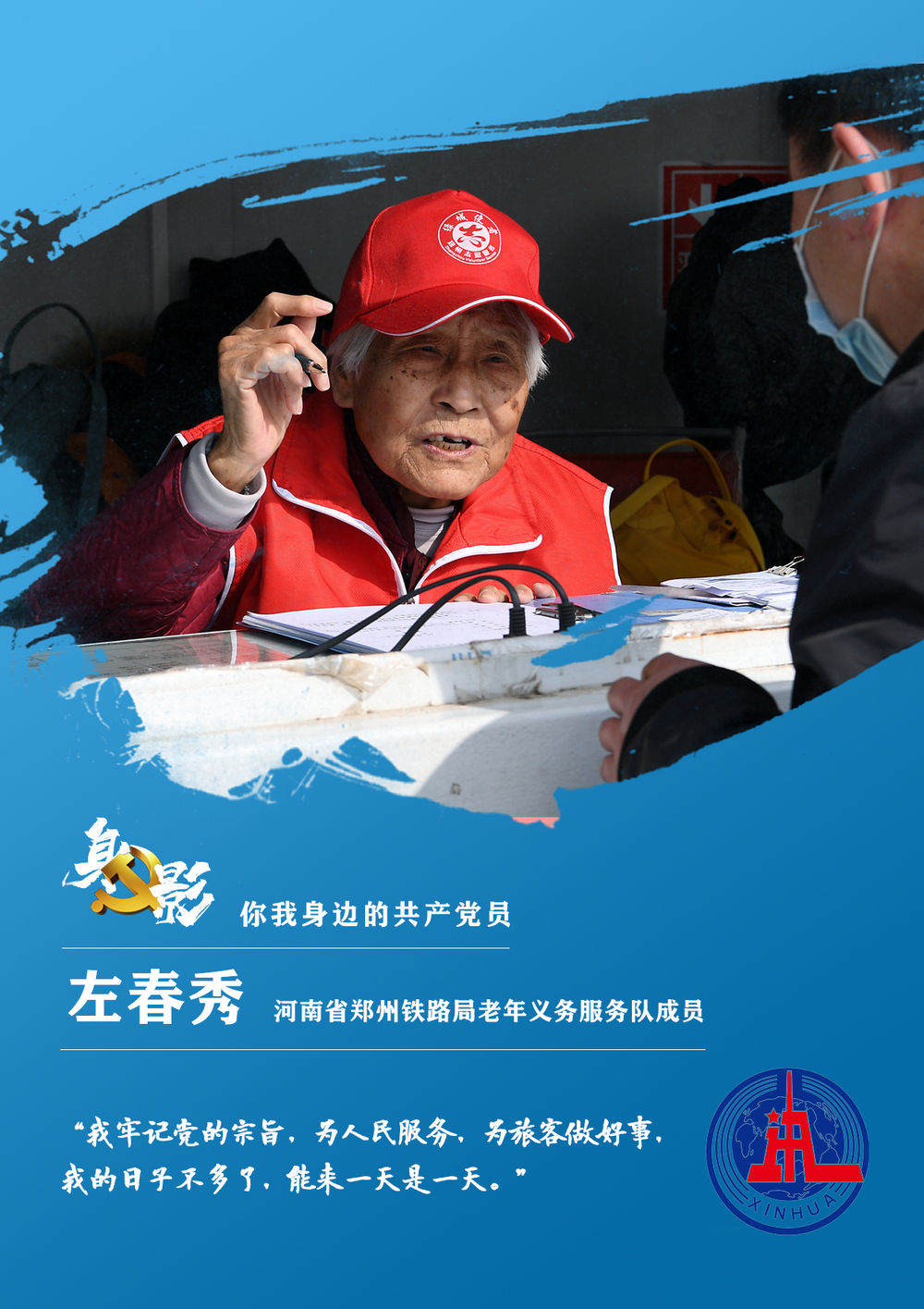 △左春秀(左)在河南省鄭州火車(chē)站西廣場(chǎng)志愿服務(wù)站里解答旅客的問(wèn)題(3月9日攝)。今年88歲的左春秀是有著(zhù)72年黨齡的老黨員,也是鄭州鐵路局的退休職工。1992年,退休后的她與同事成立了老年義務(wù)服務(wù)隊,在鄭州火車(chē)站廣場(chǎng)、候車(chē)廳、站臺為旅客提供幫助,一干就是29年。