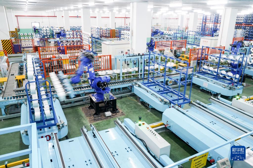 在位于江蘇省蘇州市吳江區盛澤鎮的一家智能車(chē)間,機器人在車(chē)間內自動(dòng)作業(yè)(2021年5月14日攝)。國家統計局1月17日發(fā)布數據,2021年,中國國內生產(chǎn)總值(GDP)為1143670億元,按不變價(jià)格計算,比上年增長(cháng)8.1%。新華社記者 李博 攝