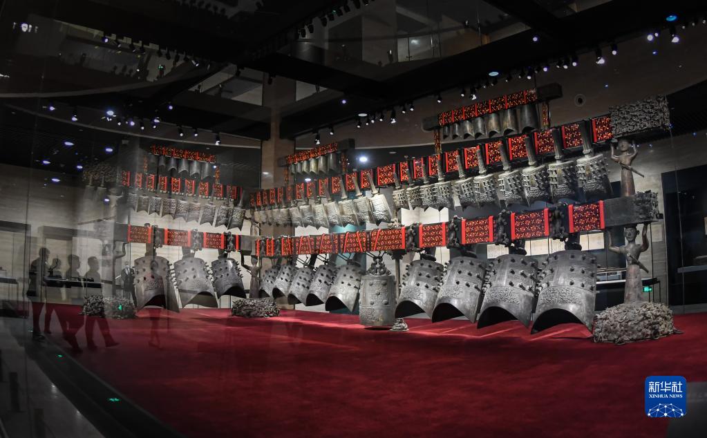 2021年12月20日,湖北省博物館新館開(kāi)館。這是參觀(guān)者觀(guān)賞曾侯乙編鐘。新華社記者 程敏 攝