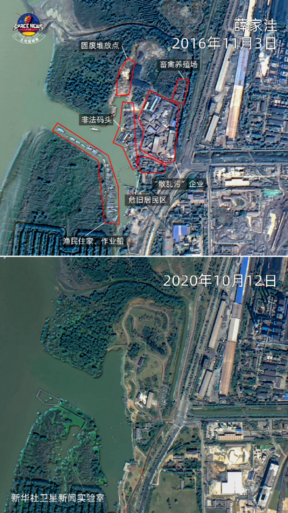 衛星圖對比,安慶港碼頭治理成效