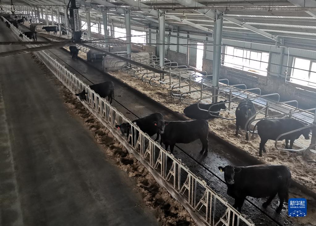 “北大倉”上,黑龍江省肇東市向陽(yáng)鄉向陽(yáng)村的冰城黑牛牧場(chǎng),擁有8棟現代化牛舍,存欄5000多頭安格斯肉牛,周邊則是廣袤的草原。牧場(chǎng)負責人孫永開(kāi)說(shuō),牧場(chǎng)的廢物處理區實(shí)現了廢物的固液分離和氧化,干濕分離處理后的牛糞可直接用于配套草原及耕地的養護,草原、牧場(chǎng)、養殖與加工得到了有機結合,可以提供更加優(yōu)質(zhì)的肉牛產(chǎn)品。