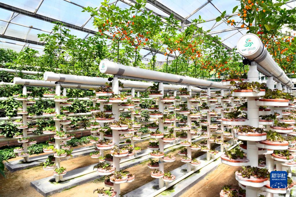 這是2020年4月20日在山東省壽光菜博會(huì )上拍攝的蔬菜無(wú)土栽培模式?!⌒氯A社記者 郭緒雷 攝