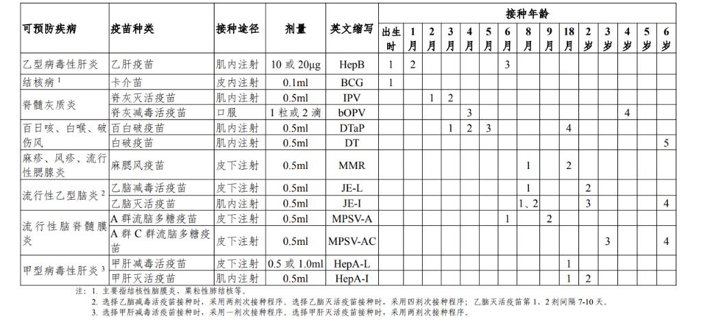 國家免疫規劃疫苗兒童免疫程序表(2021年版)(圖片來(lái)源:中國疾病預防控制中心)