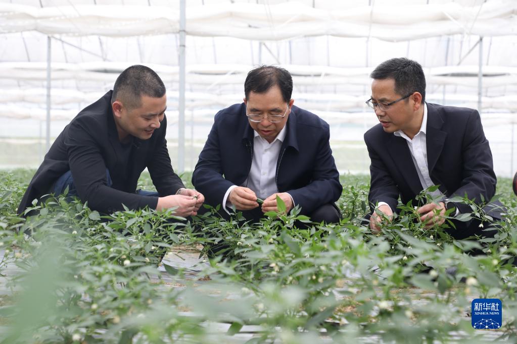 中國工程院院士、湖南農業(yè)大學(xué)校長(cháng)鄒學(xué)校(中)在樟樹(shù)鎮的辣椒基地查看辣椒長(cháng)勢(資料照片)。新華社發(fā)(湖南農業(yè)大學(xué)供圖)