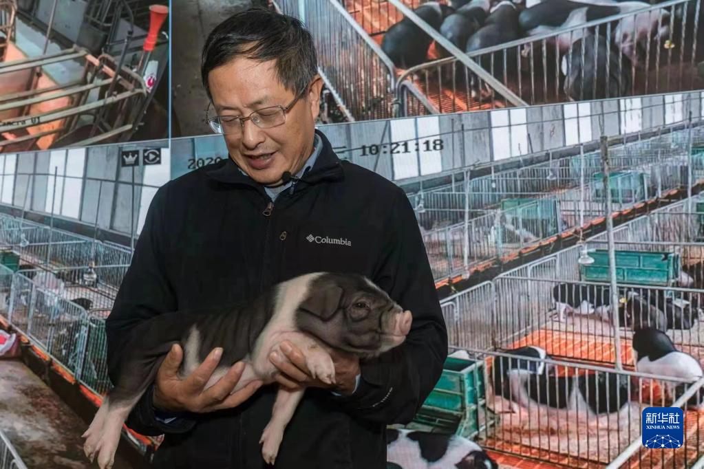 在寧鄉國家現代農業(yè)產(chǎn)業(yè)園,中國工程院院士、中國科學(xué)院亞熱帶農業(yè)生態(tài)研究所首席研究員印遇龍在查看寧鄉花豬(資料照片)。新華社發(fā)(受訪(fǎng)者供圖)