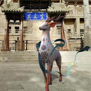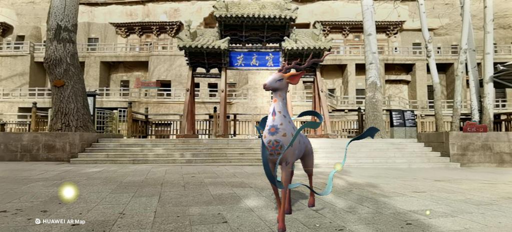 莫高窟前的九色鹿。圖為敦煌應用AR技術(shù)效果圖。新華社發(fā)