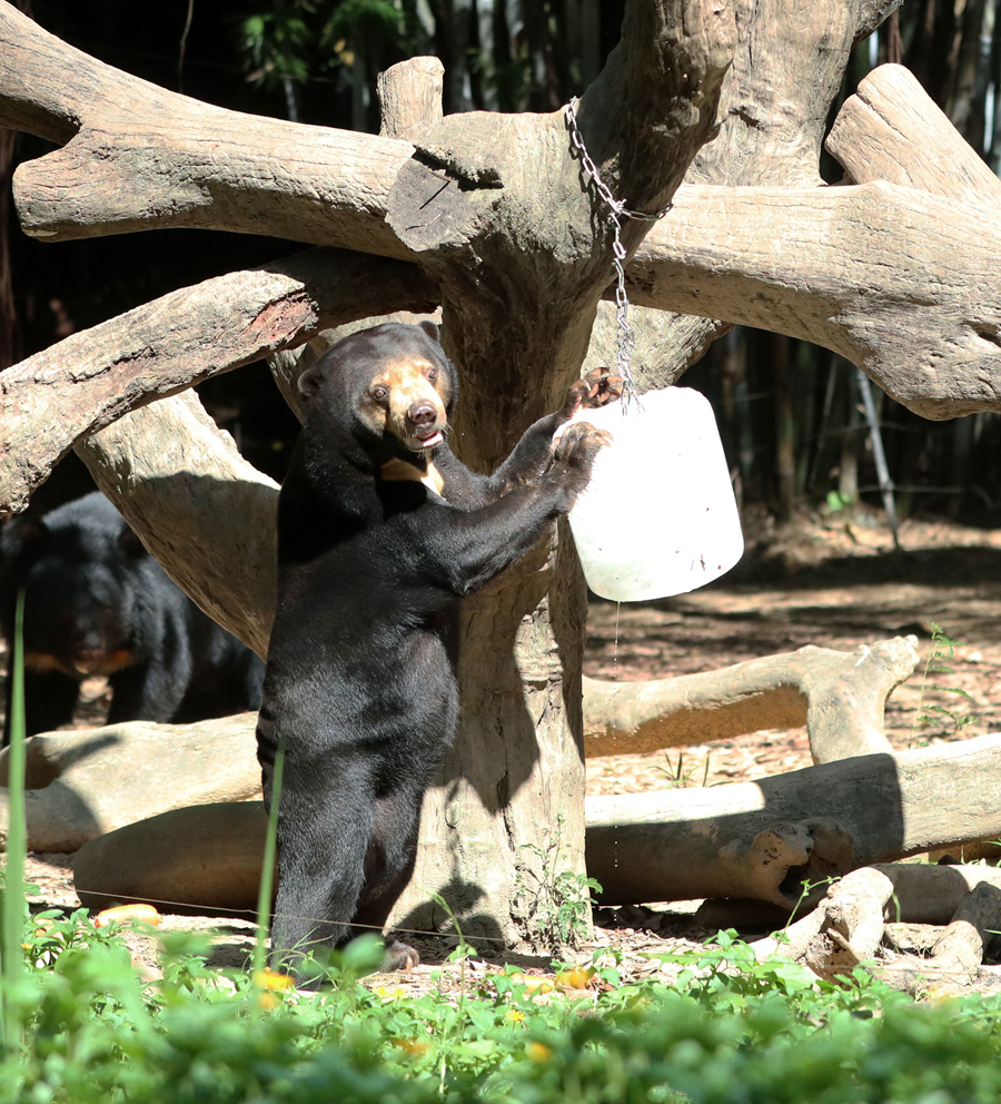 7月22日,黑熊在長(cháng)隆野生動(dòng)物世界玩冰塊。