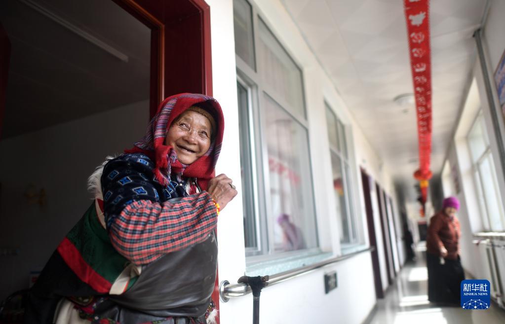 在青海省玉樹(shù)藏族自治州治多縣,提沙索忠老人在幸福敬老院內(2021年3月14日攝)。新華社記者 張宏祥 攝