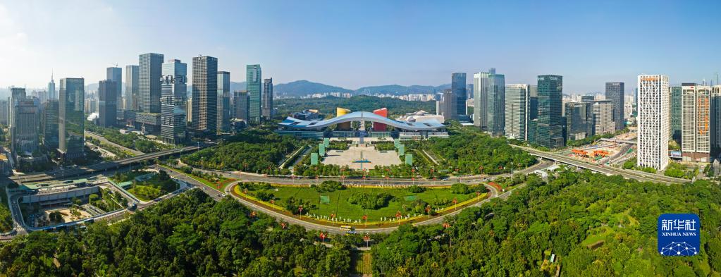這是深圳市民中心和蓮花山公園一線(xiàn)(2020年10月2日攝,無(wú)人機照片)。新華社記者 梁旭 攝