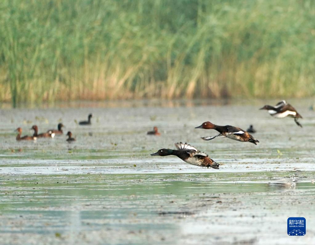 夏日的白洋淀,碧波蕩漾,荷紅葦綠。遼闊的水面上,一群活潑可愛(ài)的青頭潛鴨幼鳥(niǎo)跟隨“父母”在蘆葦叢中穿梭。這意味著(zhù),世界極度瀕危物種青頭潛鴨將白洋淀作為了繁殖地。