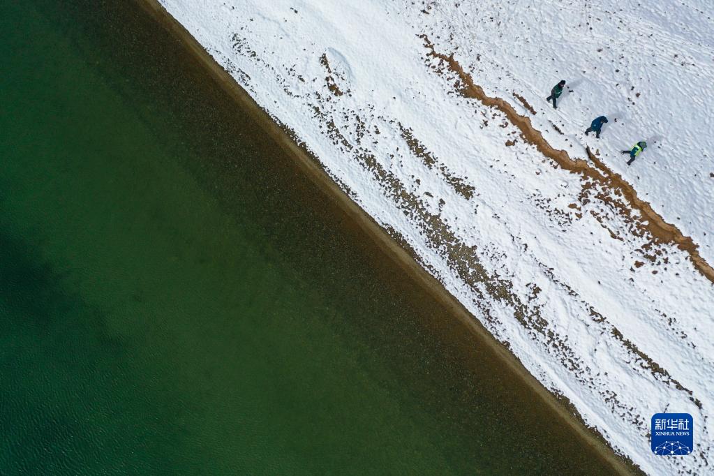 在青海省果洛藏族自治州瑪多縣扎陵湖鄉勒那村,三江源國家公園黃河源園區生態(tài)管護員在巡護(2021年10月20日攝,無(wú)人機照片)。 新華社記者 張龍 攝