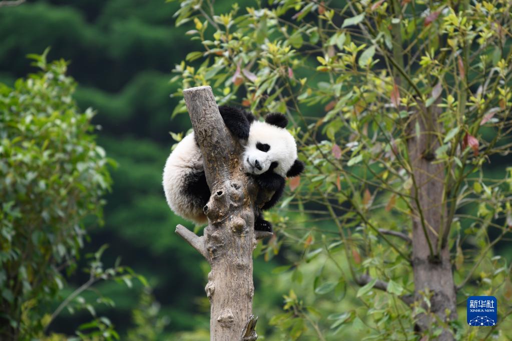 在中國大熊貓保護研究中心臥龍神樹(shù)坪基地內,一只大熊貓在樹(shù)上休息(2022年4月24日攝)。 新華社記者 胥冰潔 攝