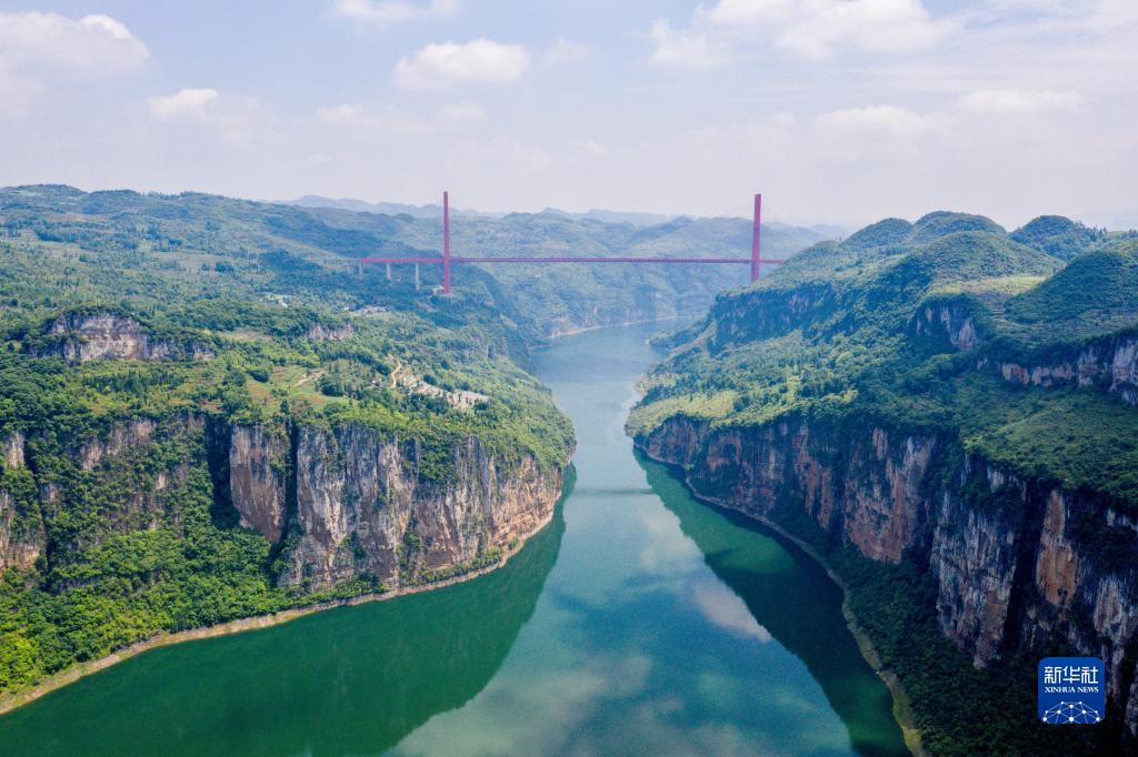 這是2022年5月31日拍攝的貴州省黔西市新仁苗族鄉化屋村烏江源百里畫(huà)廊(無(wú)人機照片)。新華社記者 歐東衢 攝