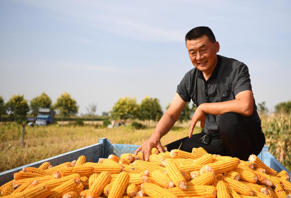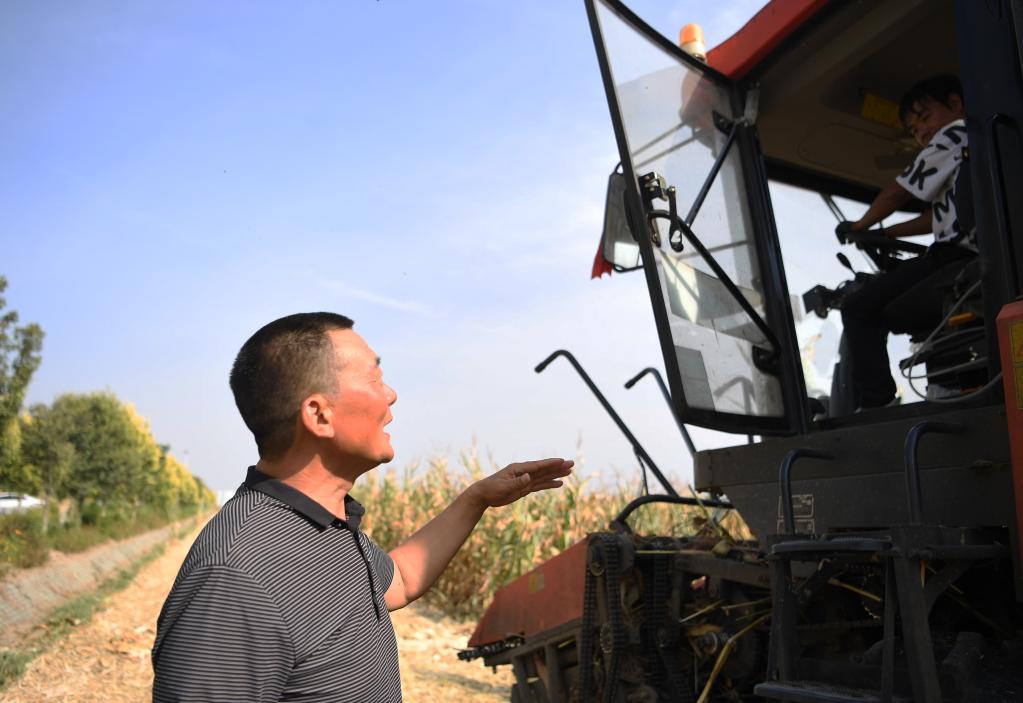 9月22日,邱守先在查看收獲的玉米。新華社記者張浩然 攝