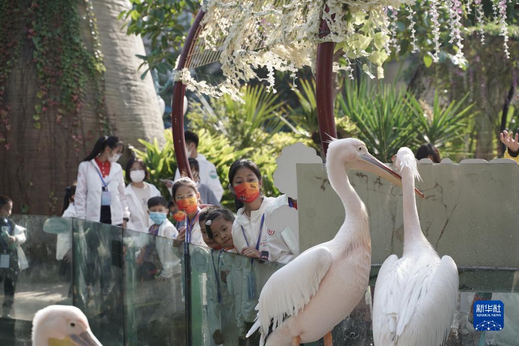兩岸“和平小天使”在廈門(mén)靈玲動(dòng)物王國參觀(guān)(2021年12月4日攝)。新華社發(fā)