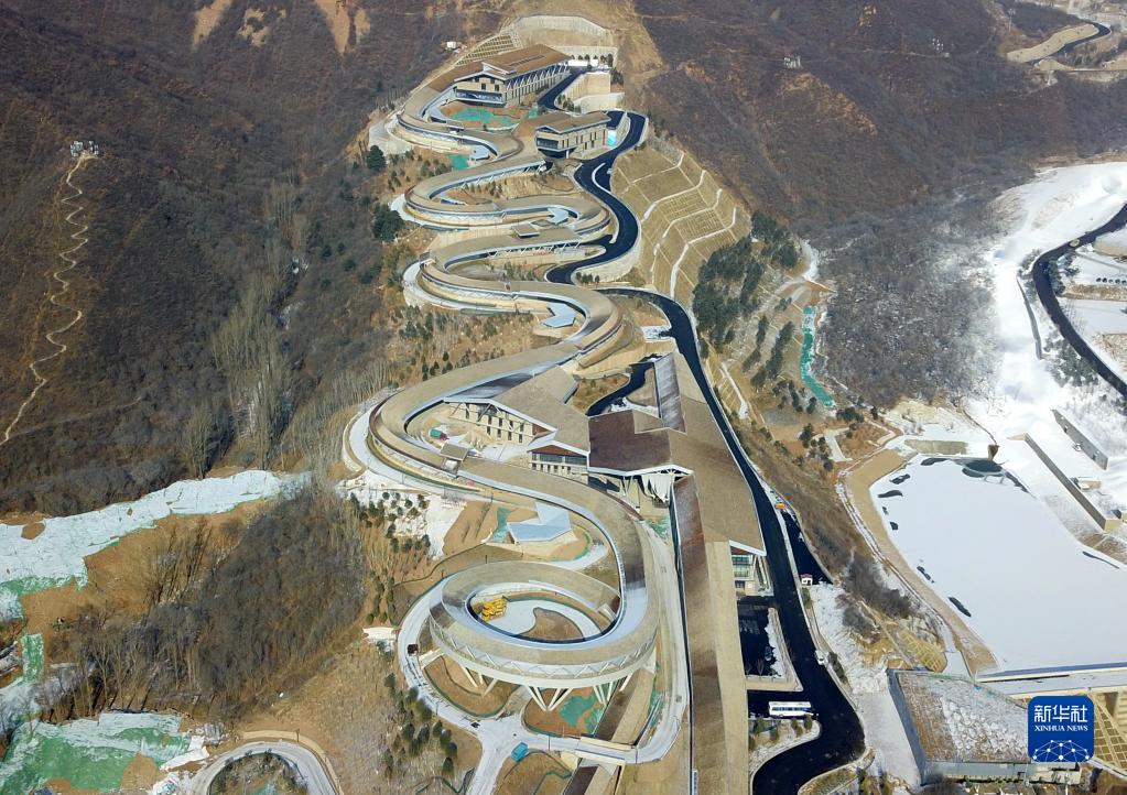 這是2021年1月19日拍攝的北京2022年冬奧會(huì )延慶賽區國家雪車(chē)雪橇中心(無(wú)人機照片)。新華社記者 張晨霖 攝