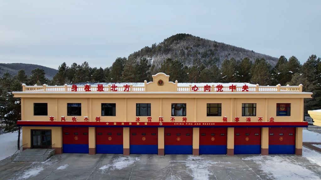 圖為位于冰天雪地中的北極村消防救援站。(受訪(fǎng)單位供圖)