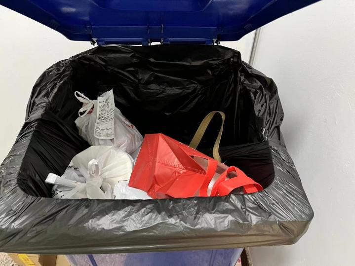 圖為午后北京王府井一處寫(xiě)字樓內的垃圾桶。(受訪(fǎng)者供圖)