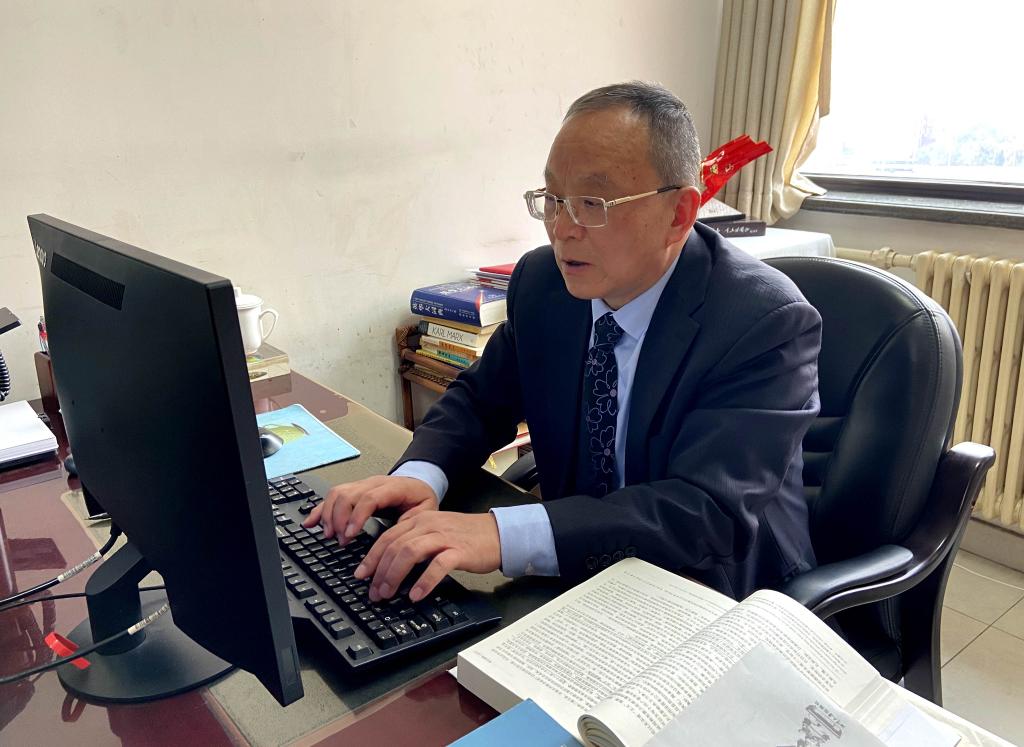 2月23日,湯維建在辦公室工作。新華社記者魏夢(mèng)佳 攝