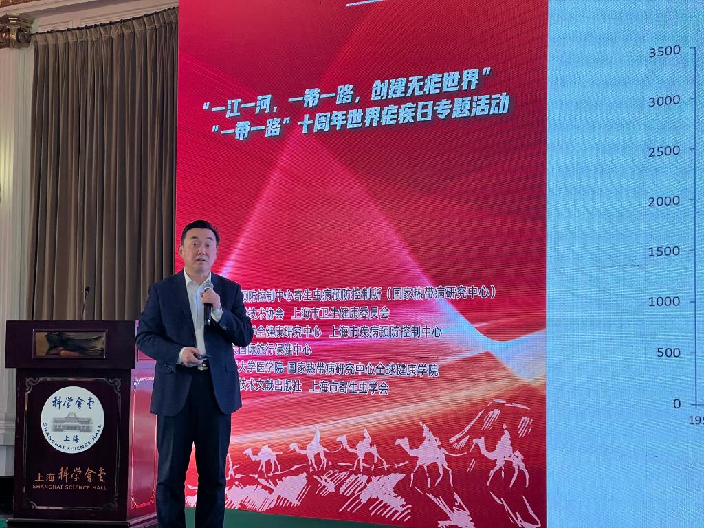 4月25日,中國疾控中心寄生蟲(chóng)病所所長(cháng)周曉農在“一帶一路”十周年世界防治瘧疾日專(zhuān)題活動(dòng)現場(chǎng)介紹我國防治瘧疾經(jīng)驗方案。新華社記者顧天成攝