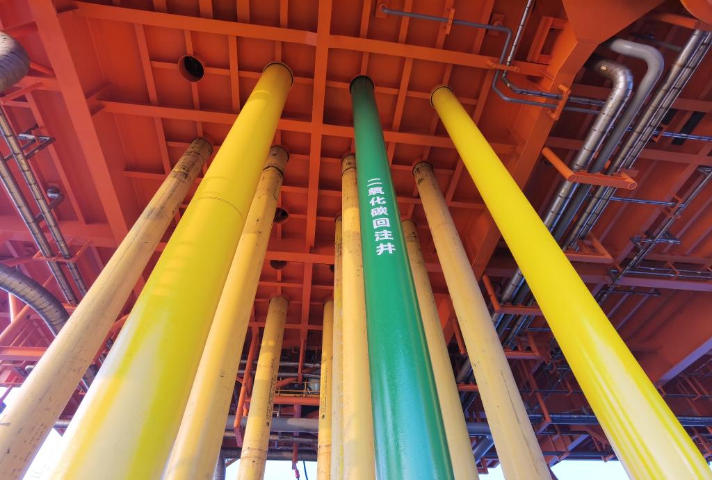 新華社深圳6月1日電(記者王攀 印朋)在蔚藍的南海,恩平15-1原油鉆采平臺穩穩矗立于海面之上。在這座巨大平臺扎入海床的眾多管道中,一條綠色管道格外引人注目——成百上千噸的液態(tài)二氧化碳正通過(guò)這條特殊管道,源源不斷回注海平面800米之下的地層之中。
