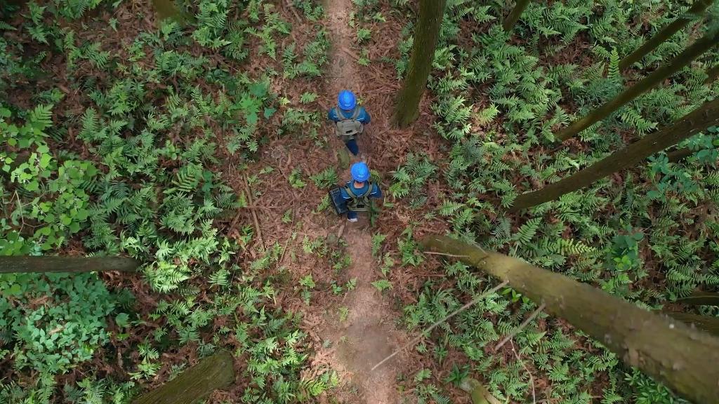 夏日清晨,江西鷹潭55歲的群眾護線(xiàn)員肖冬樣和同事來(lái)到龍虎山上清鎮沙灣村,對山區的輸電鐵塔進(jìn)行巡視,并查看野生動(dòng)物的活動(dòng)痕跡。