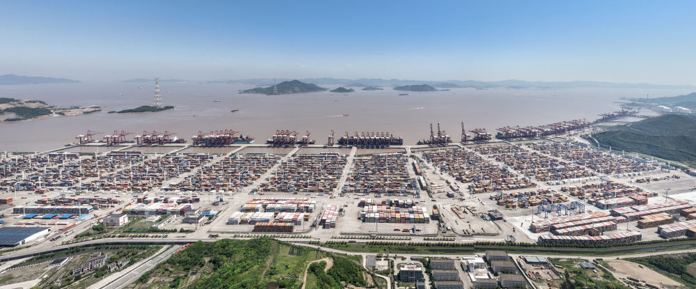 鳥(niǎo)瞰寧波舟山港穿山港區(無(wú)人機照片,5月9日攝)。新華社記者 翁忻旸 攝