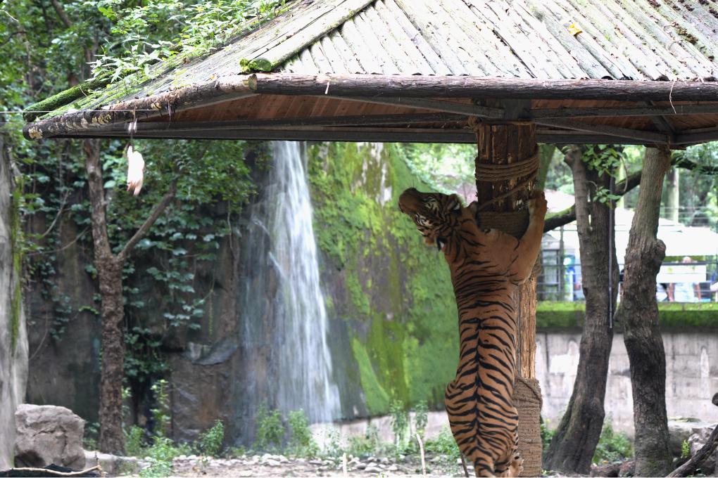 工作人員介紹,目前上海動(dòng)物園獅虎山生活著(zhù)三種老虎:東北虎、華南虎、孟加拉虎。作為華南虎的重要繁育基地之一,動(dòng)物園對這里的20余頭華南虎“建檔立卡”、報“戶(hù)口”、上“家譜”,科學(xué)施策、精心飼喂,同時(shí)建立華南虎基因庫,開(kāi)展基因保護研究。