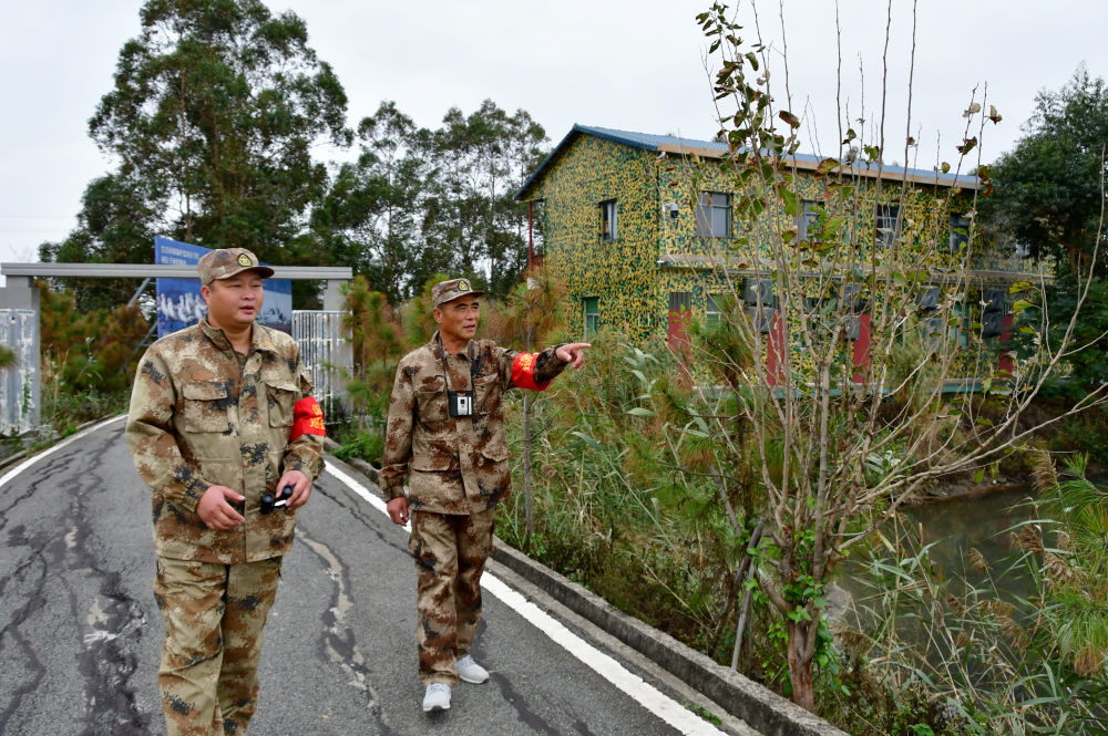 在閩江河口濕地國家級自然保護區,管護員林發(fā)金(右)和同事一起巡邏觀(guān)測保護區鳥(niǎo)類(lèi)狀況(2022年11月14日攝)。新華社記者 魏培全 攝