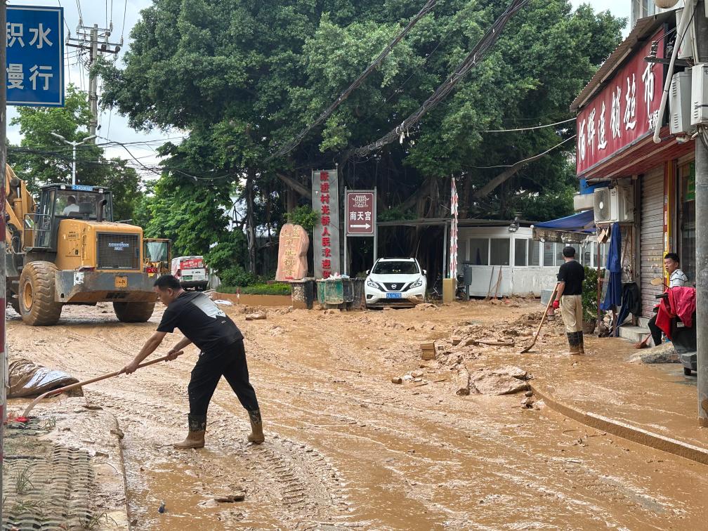 當晚10時(shí)許,光橋、程巷兩個(gè)自然村的村道均成了“河道”,主干道水深已經(jīng)超過(guò)1米。晚上11時(shí),險情再次發(fā)生,臨時(shí)安置群眾的九龍寺因山體滑坡導致墻體塌方。工作人員緊急調用皮劃艇、鏟車(chē)等工具,將村民轉移到新的安置處。往返多趟,直到6日凌晨3點(diǎn)多,50多名群眾都安全轉移到村委會(huì ),并配備熱水、食物等生活必需品。