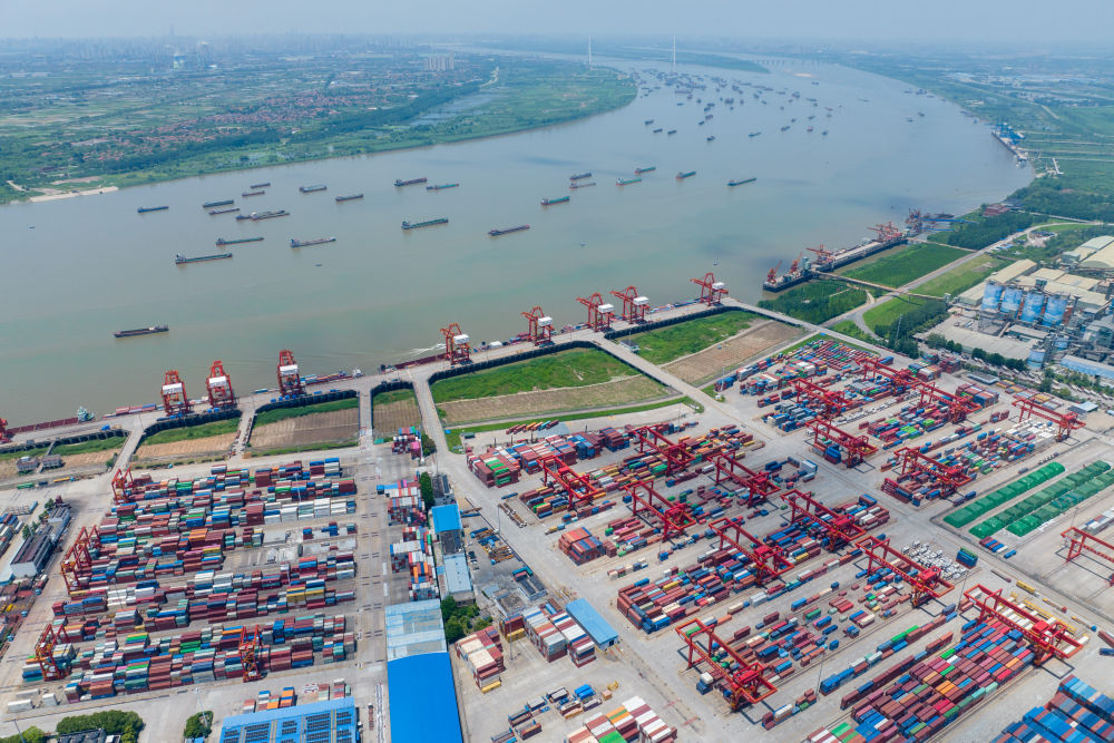 7月5日拍攝的武漢陽(yáng)邏港一期碼頭(無(wú)人機照片)。新華社記者 伍志尊 攝