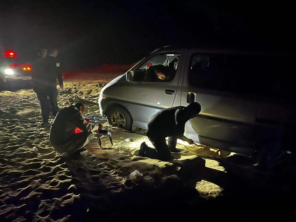 入夜后,氣溫驟降,荒灘空曠無(wú)人。經(jīng)過(guò)商量,大家決定在車(chē)上過(guò)夜。第二天一早,他們帶上水和干糧棄車(chē)徒步求救。此時(shí),接到游客親友報警的當地警方組織隊伍展開(kāi)野外搜救。所幸,晚上10時(shí)許,在警方和民間救援隊的幫助下,四人在祁連山塔塔棱河附近區域成功獲救。