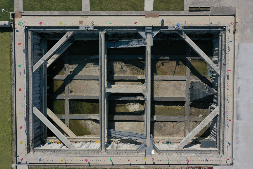 2023年11月3日在余姚市拍攝的河姆渡遺址考古發(fā)掘現場(chǎng)展示區(無(wú)人機照片)。新華社記者 黃宗治 攝