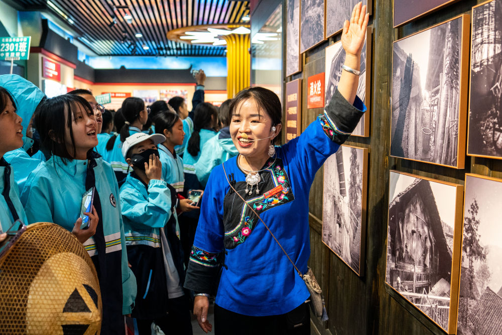 “變化”是施艷琴解說(shuō)中的高頻詞。苗鄉人曾陷于貧苦,她說(shuō)起當年的順口溜:“三溝兩岔窮旮旯,紅薯土豆苞谷粑,要想吃餐大米飯,除非生病有娃娃?!?/p>