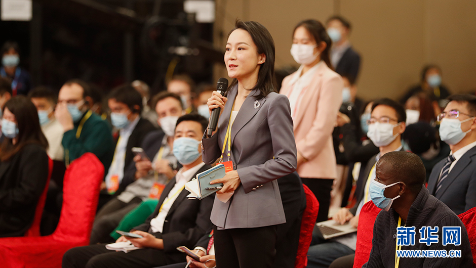 10月17日(星期一)10:00,二十大新聞中心在梅地亞新聞中心二層新聞發(fā)布廳舉辦第一場(chǎng)記者招待會(huì )。這是記者在分會(huì )場(chǎng)提問(wèn)。(新華網(wǎng) 陳杰 攝)