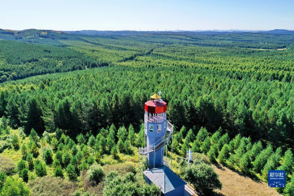 河北塞罕壩機械林場(chǎng)內的望海樓(2021年8月23日攝,無(wú)人機照片)。新華社記者 牟宇 攝